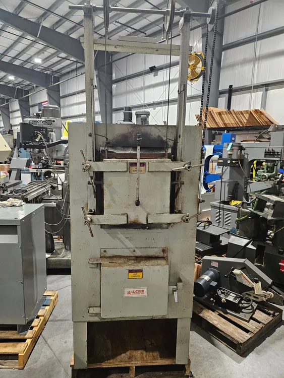 LUCIFER 82AM-I12 Dual Chamber Electric Heat Treating Oven #8103. High Temp Chamber: 0-2050°F, 10”x9-3/4”x14-1/2”. Low Temp Chamber: 0-1250°F, 10-1/2”x12”x14-1/2”. Honeywell Digital Control. Wired for 230V/3 phase/60 HZ.